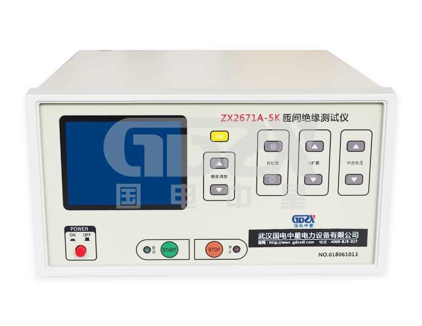 ZX2671A-5K匝間絕緣測試儀采用“沖擊波形比較法”,將具有規定峰值和波前時間的沖擊電壓交替施加于相同設計的被測件與標準件上。通過比較兩個振蕩波形的差異,從而判斷電機繞組匝間絕緣的好壞。對電暈放電、局部短路、接線錯誤、嵌線錯識、線圈平衡、相間短路等各類故障均能直觀地判別。