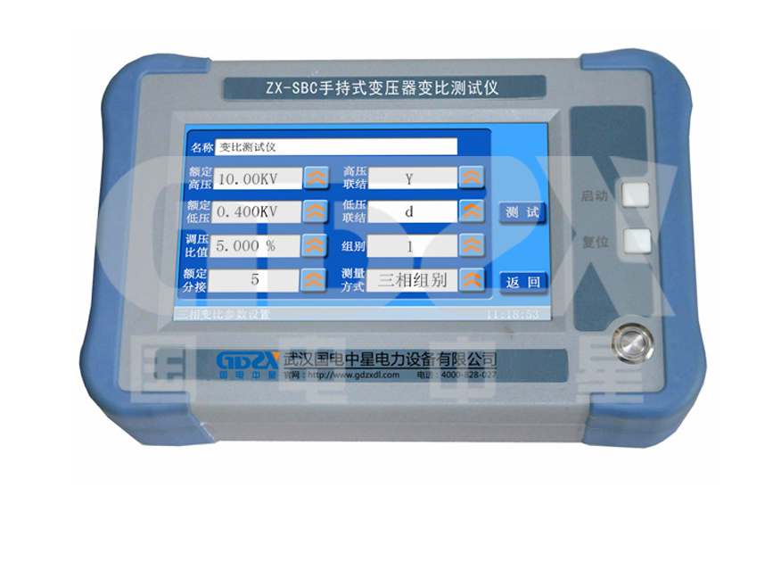 在電力變壓器的半成品、成品生產過程中,新安裝的變壓器投入運行之前及根據國家電力部的預防性試驗規程,要求對運行的變壓器進行匝數比或電壓比測試,可以檢查變壓器匝數比的正確性、分接開關的狀況、變壓器是否匝間短路、變壓器是否可以并列運行。傳統的變比電橋讀數不直觀,要進行換算,只能逐相進行測量。ZX-SBC手持式變壓器變比測試儀克服了傳統變比電橋測試的缺點,操作簡便直觀,采用三相精密逆變電源,測試快,準確度高。