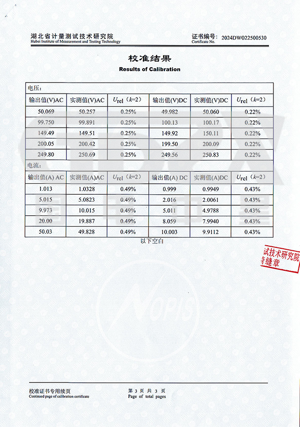交流電壓0~250V±0.5%1000W