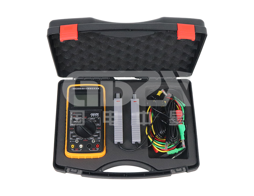 SMG2000B數(shù)字雙鉗相位伏安表是專為現(xiàn)場測量電壓、電流及相位而設(shè)計(jì)的一種高精度、低價(jià)位、便攜手持式、雙通道輸入測量儀器。用該表可以很方便地在現(xiàn)場測量U-U、I-I及U-I之間的相位,判別感性、容性電路及三相電壓的相序,檢測變壓器的接線組別,測試二次回路和母差保護(hù)系統(tǒng),讀出差動(dòng)保護(hù)各組CT之間的相位關(guān)系,檢查電度表的接線正確與否等。