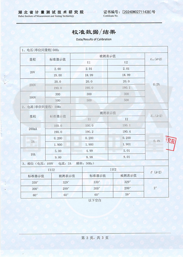| 表3:工頻相位測量誤差 | ||