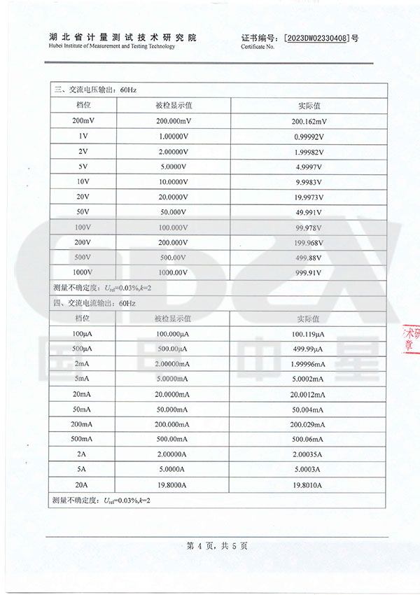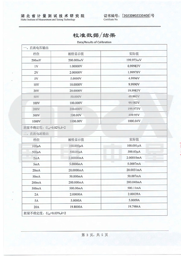 5. 輸出電壓、電流的范圍及準確度(23℃±2℃,輸出值大于10%量程)